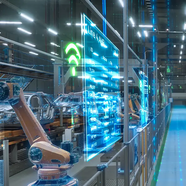 IoT sensors embedded in machines and equipment continuously collect operational data from the factory floor, providing insight into production performance and machine health.